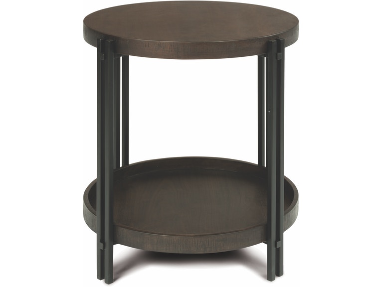 Place decorative lighting right where you need it with the Prairie lamp table. This table’s round frame has a spacious surface to hold a lamp, beverages and other essentials, while the open tray-style shelf below offers an additional area to stack books or display decor. Sleek in design, this Prairie table combines the contemporary appeal of gunmetal finished metal with the rich tones and textures of dark walnut veneer and rough-sawn edge banding for a striking mixed-media look.