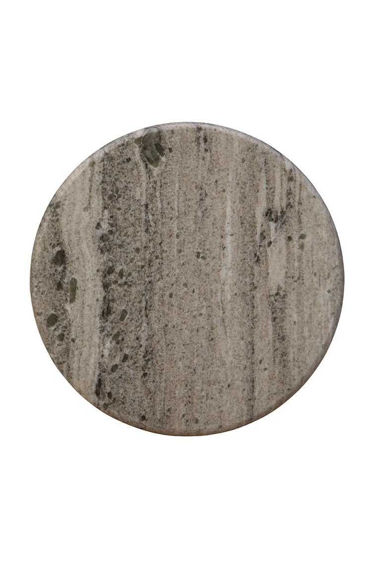 Introducing the Trumpet Martini Table, a unique piece inspired by its namesake drink. The table features a tapered black metal base, mirroring the iconic shape of a martini glass. Resting on the base is a charming gray marble tabletop, ideal for enjoying martinis and conversations. With its modern and minimal design, the Trumpet Martini Table effortlessly combines style and functionality, making it a chic addition to any contemporary space.