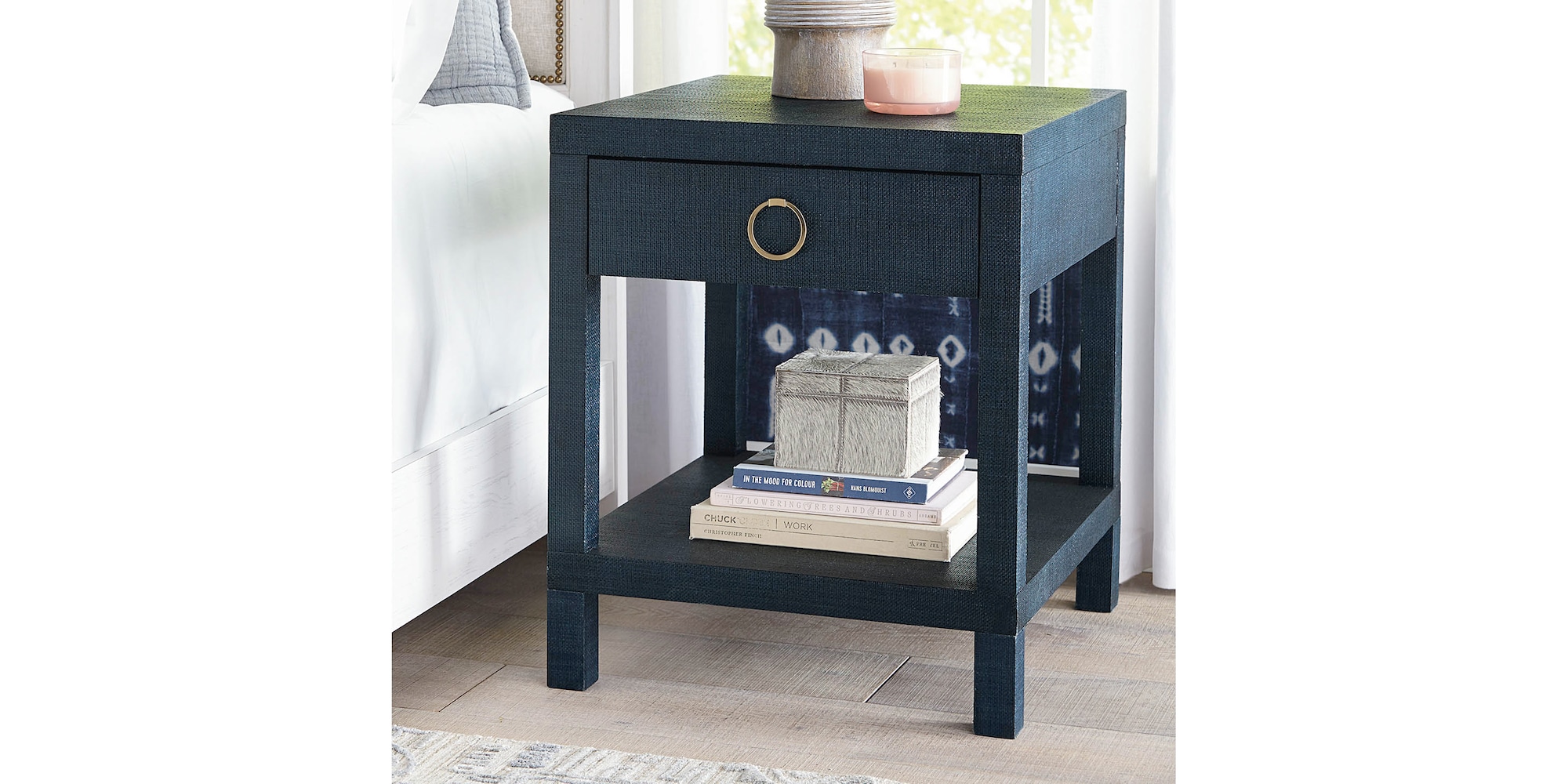 The unexpected texture of a Ventura End/Bedside Table brings neo-traditional charm to any room! This is a stunning End/Bedside Table, with a modern satin brass ring pull. Choose Pacific Blue or Sand Grey to add a pop of color or an attractive neutral texture. You can even choose to create a different look by removing the legs.