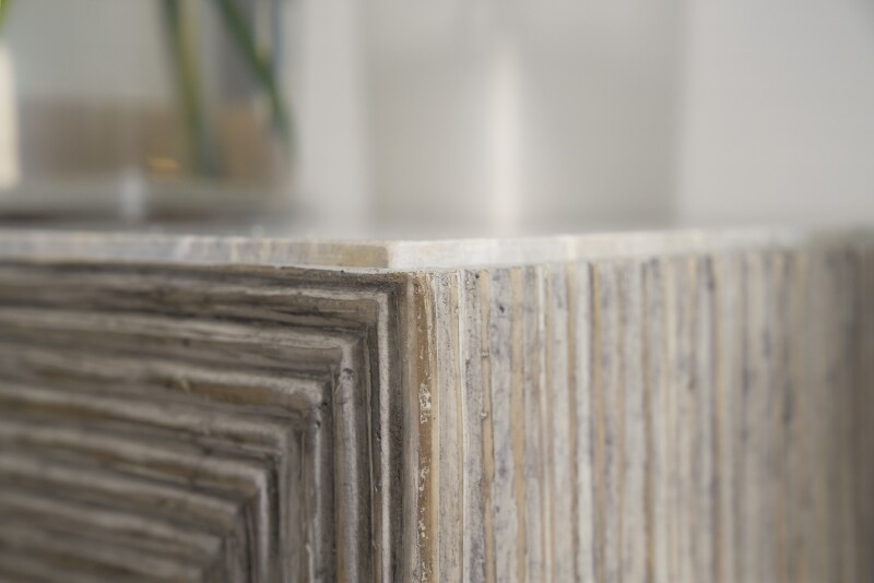 Infuse your space with tranquility with the organic and chic Armani Sofa Table crafted of Pecan wood with a Crema marble top featuring a soft veneer pattern. The neutral Brie finish is a grey tone with reeded details to complement a wide range of interiors.