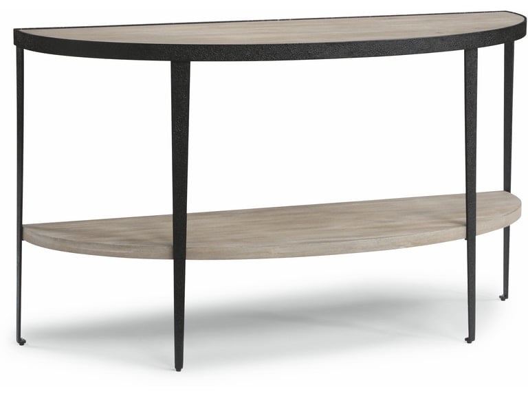 Compass brings a rustic focal point to your space with the round, whitewash wood shelves that are set on a textured, gunmetal-finished frame. The sofa table is designed to be placed along the back of a sofa and features two long, half-round shelves. Compass will bring the eye-catching, rustic element you seek to any room.