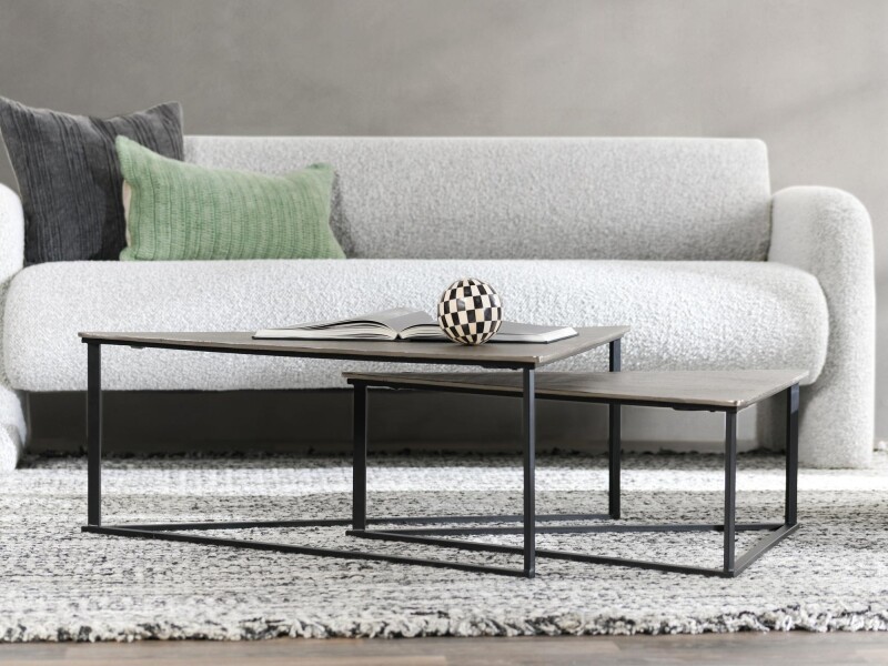The Burton Coffee Table Set offers modern versatility with clean, geometric design. Featuring a nested set of two tables, it provides flexibility for various configurations to suit your space. The sleek metal frames support smooth tabletops with a contemporary finish, adding a minimalist aesthetic to any living area. Perfect for creating a layered look or maximizing functionality, the Burton set combines style and practicality seamlessly.